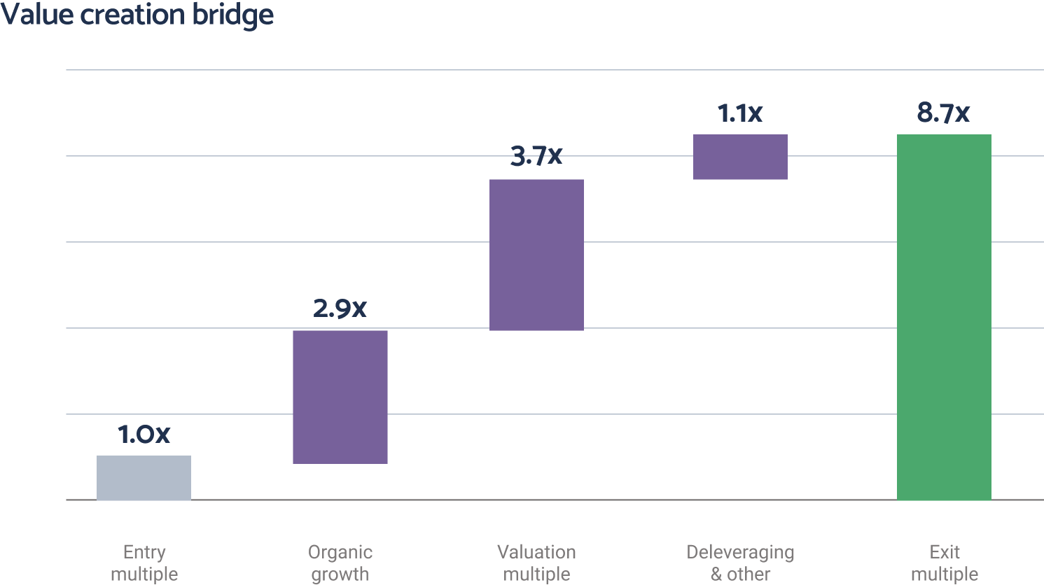 - Delivered strong top-line revenue performance over the holding period (c. 40% cumulative annual growth rate from 2018 to 2023), despite a challenging macroeconomic backdrop.